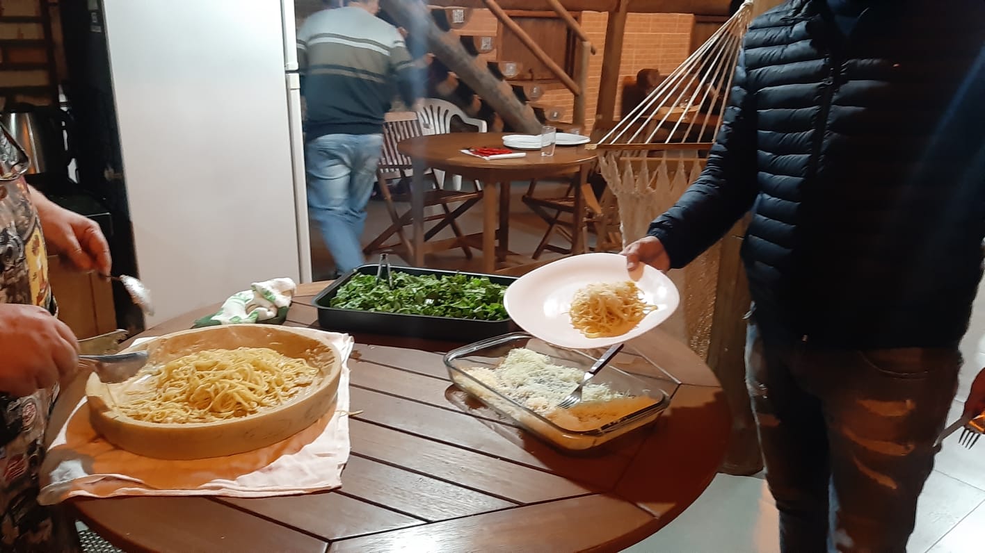 Salada de rúcula e muita cerveja gelada.